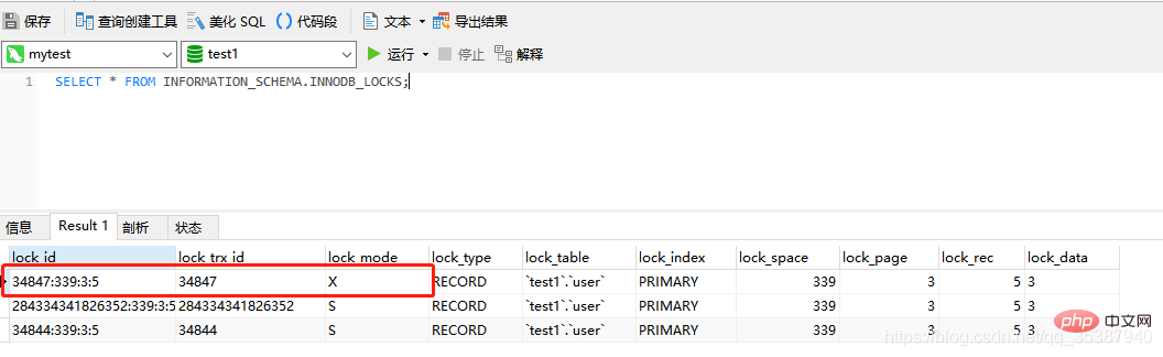 我们再查询一下,那些事务在使用锁,