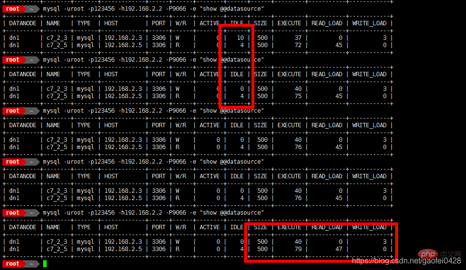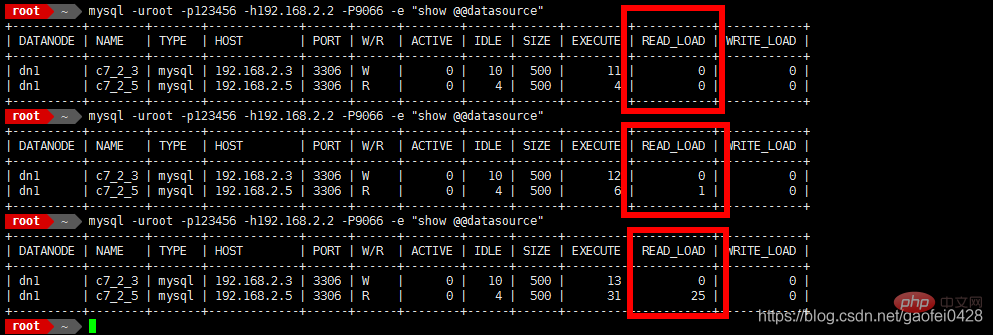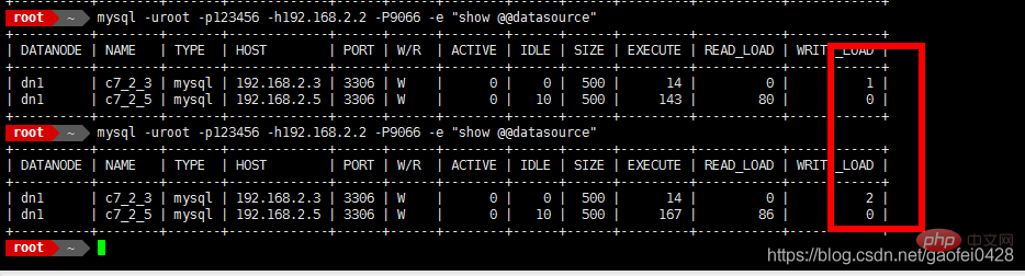 - mysql -uroot -p123456 -h192.168.2.2 -P9066 -e "show @@datasource"