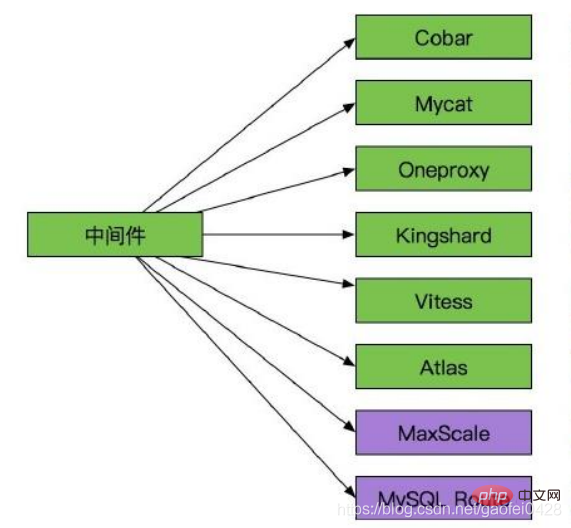 这两个中间件都算是官方的,MaxScale 是 mariadb (MySQL 原作者维护的一个版本)研发的,目前版本不支持分库分表。MySQL Route 是现在 MySQL 官方 Oracle 公司发布出来的一个中间件。