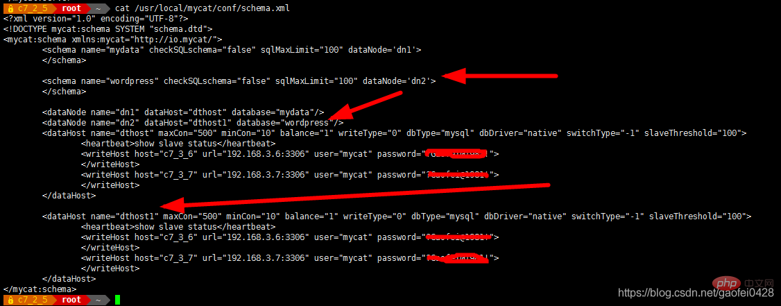</schema> - <dataNode name="dn2" dataHost="dthost1" database="wordpress"/>