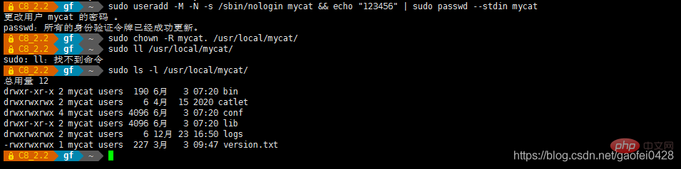 - sudo useradd -M -N -s /sbin/nologin mycat && echo "123456" | sudo passwd --stdin mycat