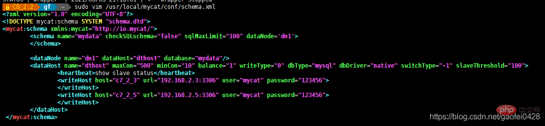 - cp /usr/local/mycat/conf/schema.xml{,.bak}