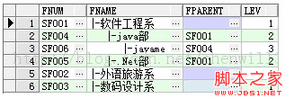 不难看出部门之间用fparent关联,那sql语句怎么写呢,下面是一种偷懒的写法
