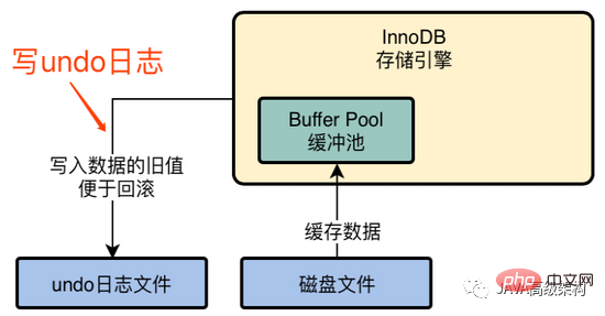 undo log :当对缓冲池的数据进行修改时,在事务未提交的时候都可以进行回滚,将旧值写入 undo 日志文件便于回滚,此时缓冲池的数据与磁盘中的不一致,是脏数据