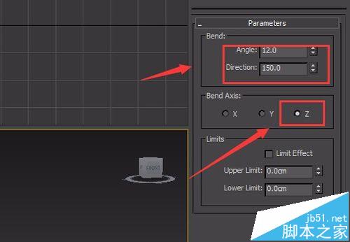 12、选择制作好的腿,给其添加一个bend修改器,并设置其参数如图所示: