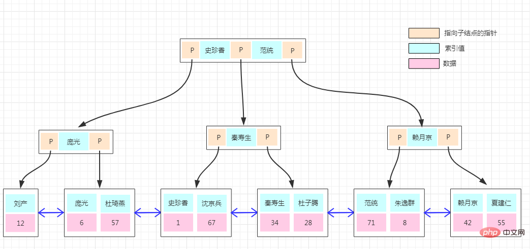 4、所有叶子节点之间都有一个链指针。