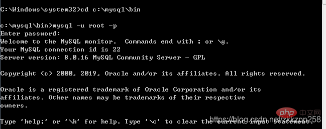 服务启动成功之后,输入命令:mysql -u root -p(第一次登录没有密码,直接按回车过)!