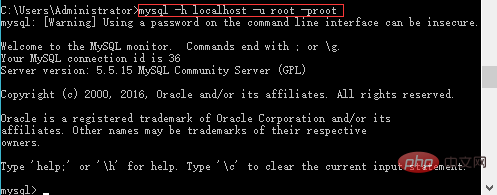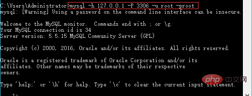 mysql -h localhost -P 3306 -u root -proot