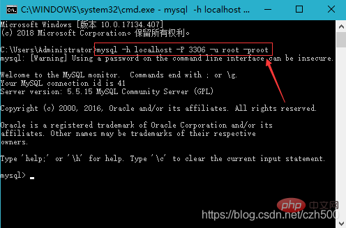 mysql -u root -proot或者mysql -uroot -proot