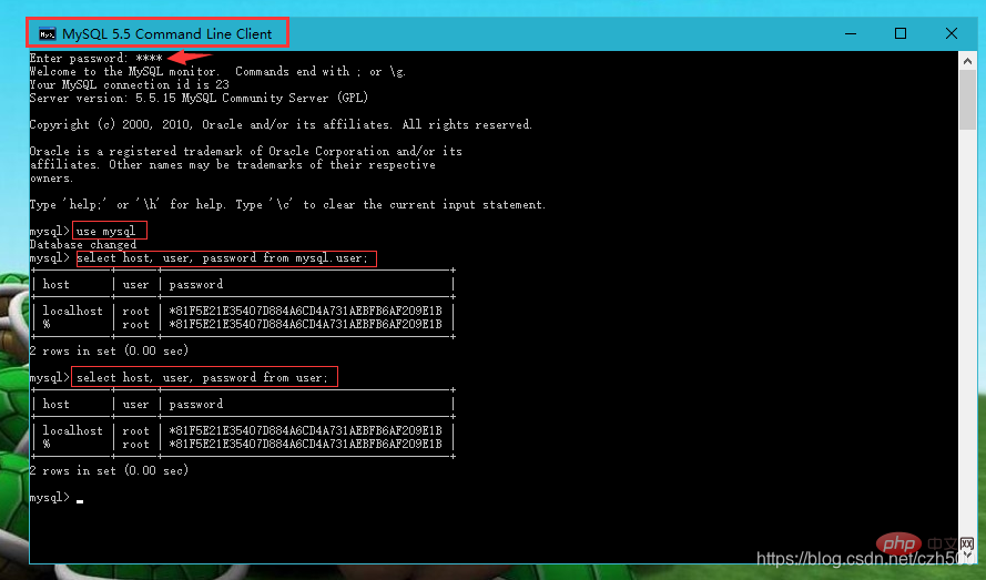 第1种 (通过mysql自带的客户端,MySQL 5.5 Command Line Client) 不推荐这种方式