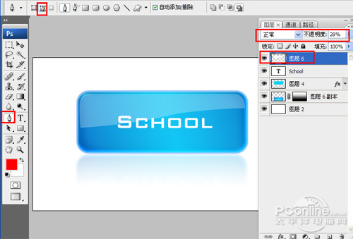 5、单击工具箱中的横排文字工具 ,输入school,然后在工具选项栏上设置字体参考图12,如图12所示