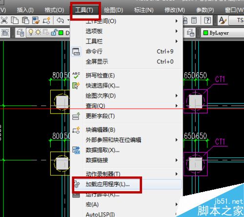 3、点击绘图栏中的“工具”---“加载应该程序”