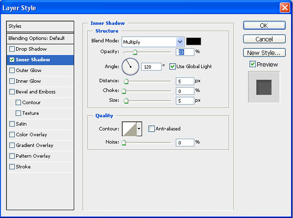 2、现在我们需要通过图层样式给字体创建出银光的效果。给字体添加如下内阴影样式。