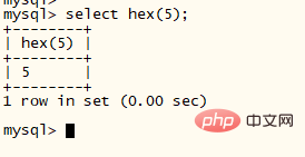 select hex(5);