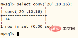 select conv('20',10,16);登录后复制