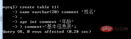 创建表的时候写注释,在使用comment关键字