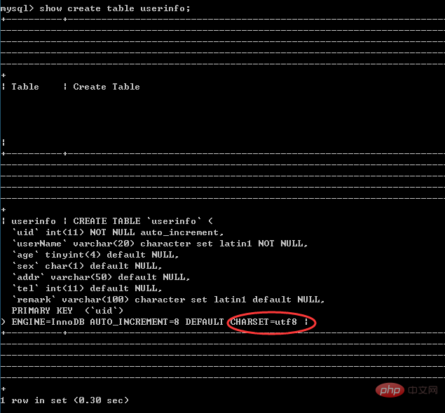 c、show create table 表名; ----查看该表的编码格式