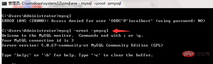 b、如果已经在 cmd 窗口,又不愿退出,则可以输入 mysql -uroot -pmysql; (root换成自己的用户名,mysql 换成自己的密码)
