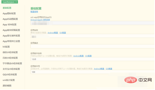 2、打开项目中的manifest.json文件,查找到具体配置