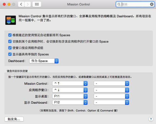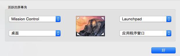 因为我们可以利用Mission Control来提升传统鼠标的操控模式,以达到苹果鼠标、触控板类似的多手势控制效果。我们只需要将鼠标指针移动到屏幕四个边角就能实现预先设计好的界面切换,效率同样很高。