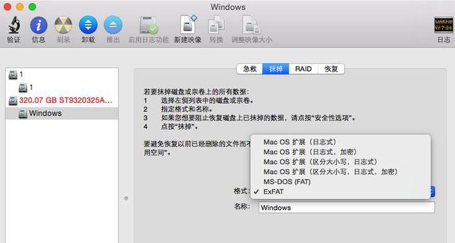 以前Windows下使用过的U盘、移动硬盘在Mac电脑上只能读不能写,这也是用户上手Mac时经常遇到的问题。解决方法其实很简单,利用磁盘功能将U盘、移动硬盘格式成为ExFAT模式即可,这种模式也没有单个文件最大4GB的限制,适用面最广。