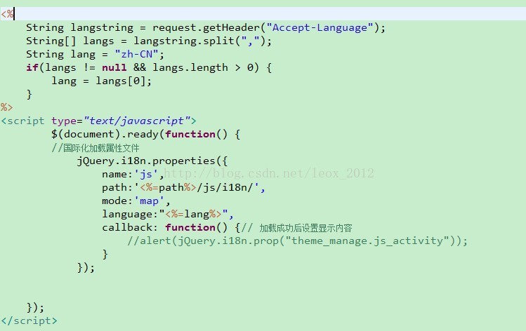 当我们在做前台页面开发时,由于页面内容过多,过于繁杂,有的时候一个页面上千行的(当然这样的页面也就算一般的),为了减少页面的内容,我们将页面的js文件提取出去,放入一个特定的js文件中,然后在页面中导入进来。这样做当我们需要做应用程序的国际化的时候,就需要考虑js的国际化,这里介绍一下使用JQuery.i18n.properties来实现js的国际化。