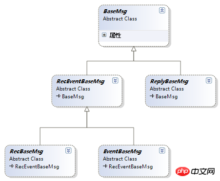 你的URL就可以根据收到的消息类型和内容做出回应以实现强大的业务服务,如上面返回的物流详细。消息全部是以XML格式传递,而SDK做的就是把XML转换成.NET对象,以方便你编写业务逻辑。消息的框架类图表示为(点击查看包括子类的全图):