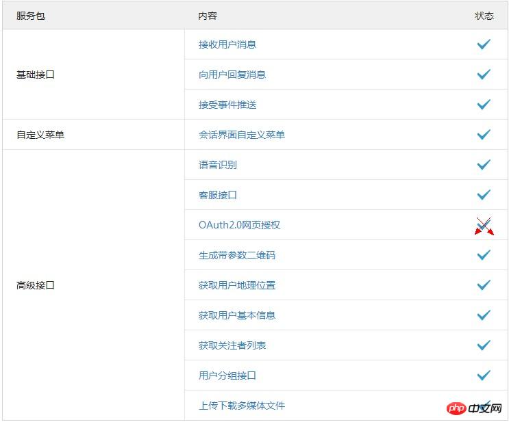 }登录后复制SDK包含了除(OAuth2.0网页授权)的所有接口的封装,类名及方法名都很明显,这里就不一一演示,有兴趣的朋友可以下载dll自行测试,这是一张付费认证过的接口图: