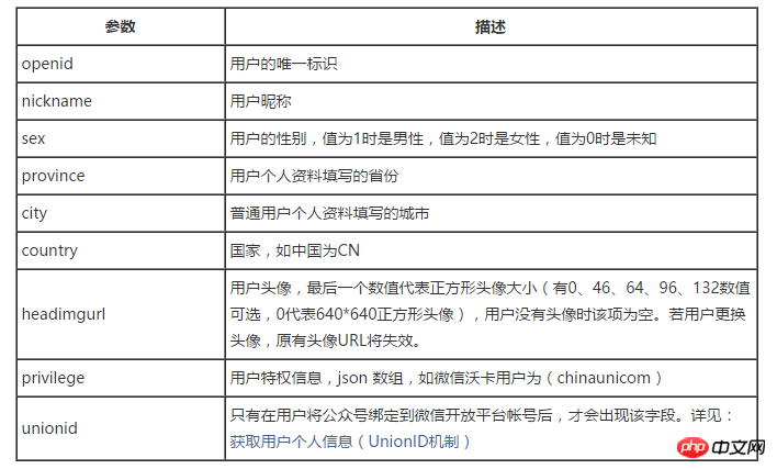微信参数说明 详情请见 微信开发者文档