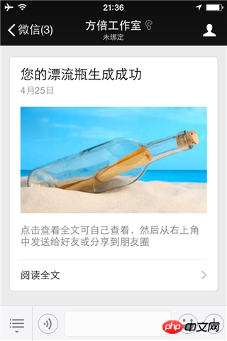 1. 关注“方倍工作室”微信公众账号,回复“123”获得定位型漂流瓶创建链接。