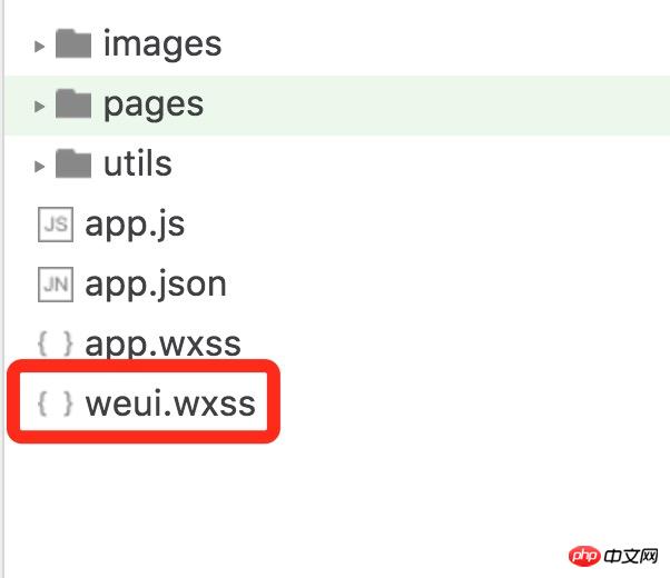 注意是在【weui-wxss/dist/style/】目录下,不要【weui-wxss/src】目录里面下载将weui.wxss拷贝到小程序根目录中