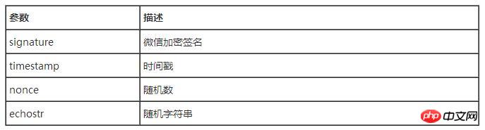 公众平台用户提交信息后,微信服务器将发送GET请求到填写的URL上,并且带上四个参数: