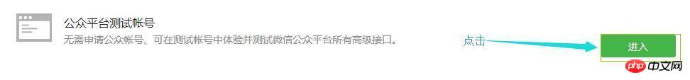 找到页面上的公众平台测试帐号,点击进入。会出现另一个登录页面,用你的微信扫一扫即可进入。(每一个微信公众平台的测试号都会绑定以个微信号用于管理)。