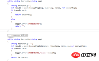 类中的定义两个方法,分别来进行加密(EncryptMsg)和解密(DecryptMsg),创建一个WXBizMsgCrypt对象,调用它的方法加解密,具体代码可见代码示例