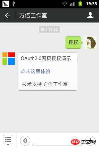 将该链接回复给关注用户,用户点击后,弹出应用授权界面