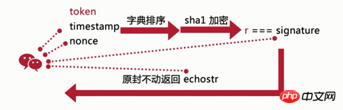 token、timestamp和nonce三个参数进行字典排序;将三个字符串拼接成一个字符串进行sha1加密;