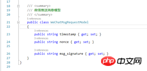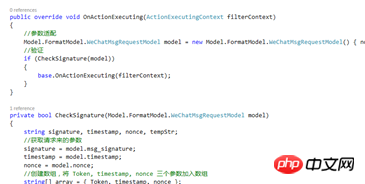 private bool CheckSignature(Model.FormatModel.WeChatMsgRequestModel model)