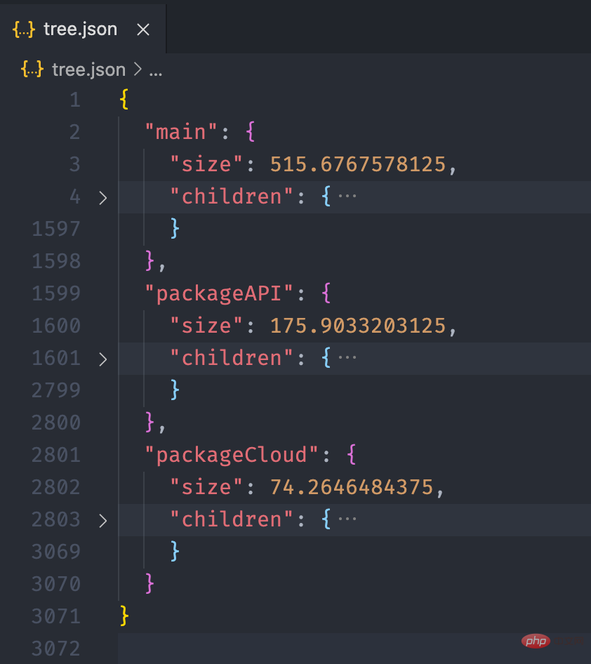 }复制代码登录后复制我们可以在运行之后,将文件输出到 tree.json 看看。