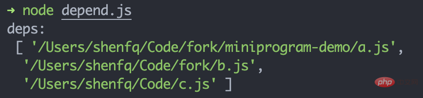 }复制代码登录后复制我们可以创建一个 js,看看输出的 deps 是否正确: