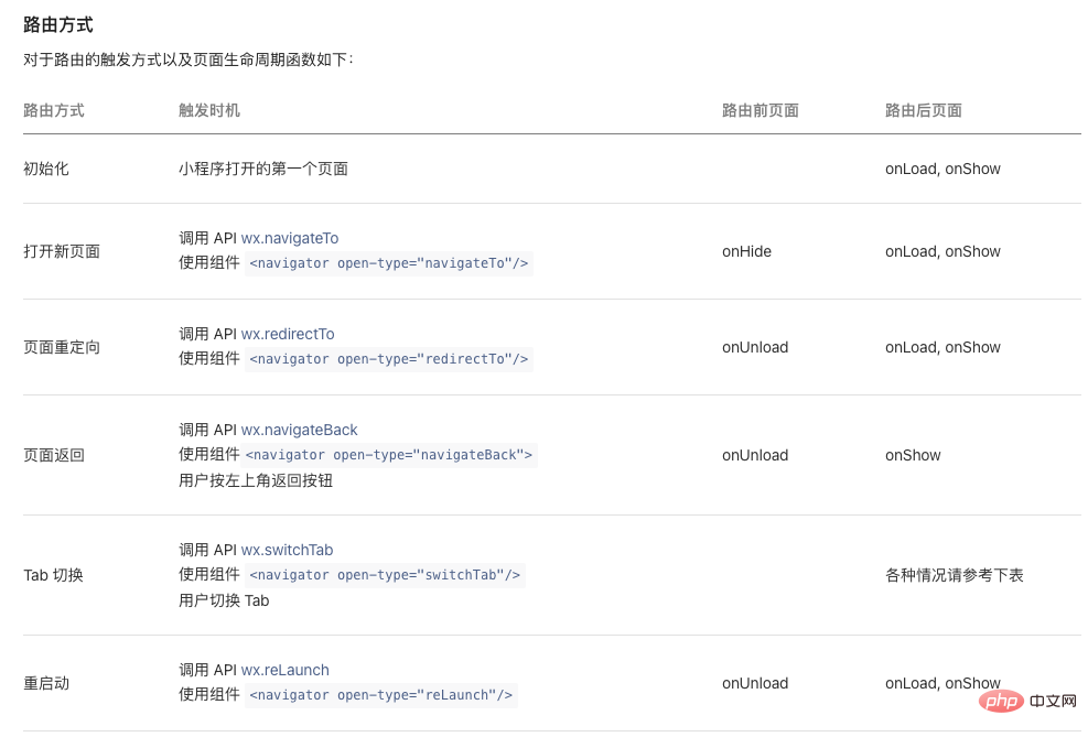微信小程序官方文档为开发者提供了5种路由跳转的api,每一种都有其特殊的用法: