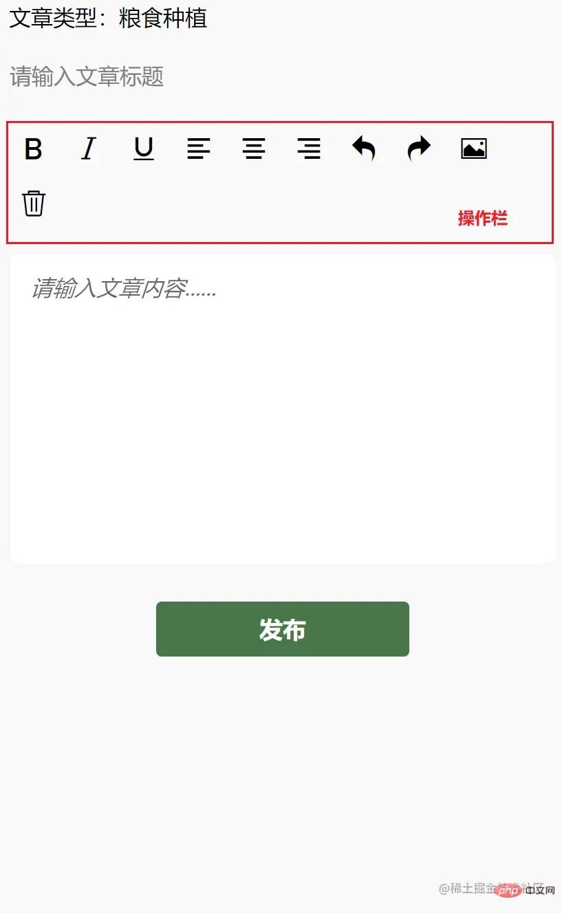 本文只实现操作栏的功能,实现富文本编辑,其他文章类型的选择,请自行实现,不难哦!