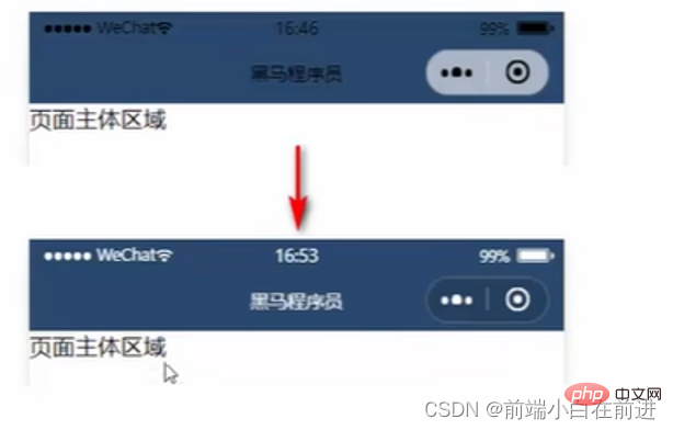 需求:把导航条上的标题,从默认的“WeChat”修改为"黑马程序员",效果如图所示: