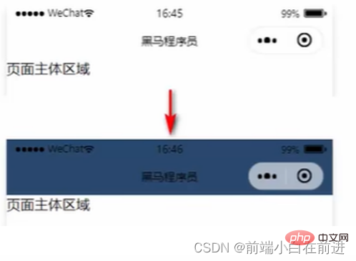 设置步骤:app.json => window => navigationBarBackgroundColor