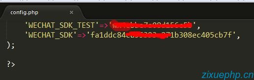 5、从微信公众号后台获取微信公众号的appid和appsecret,并配置到thinkphp的配置文件中。