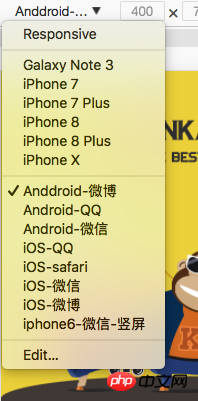 两个平台,这么多情况,要一个一个测试吗?当然要一个一个的验证,但是在开发期间,没有必要改一行,在手机上测试一下,这样效率太低了,尤其是像一样,选了一个安卓4.4的手机,绝对可以磨练你的耐心。为了提高效率,我把我常用到的UA分享给大家,这样在Chrome模拟器里配置一下,就可以本地调试了,常用UA如下: