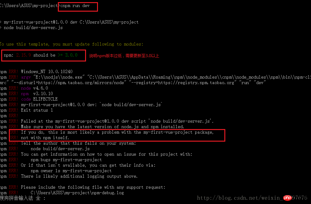 第二种:npm版本过低,需要升级:
