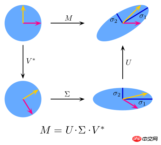 奇异值分解是线性代数中一种重要的矩阵分解,是矩阵分析中正规矩阵酉对角化的推广。对于给定的m*n矩阵M,可以将其分解为M=UΣV,其中U和V是m×m阶酉矩阵,Σ是半正定m×n阶对角矩阵。
