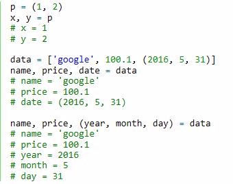 下面就为大家分享一篇使用Python将数组的元素导出到变量中(unpacking),具有很好的参考价值,希望对大家有所帮助。一起过来看看吧最近工作中遇到一个问题,需要利用Python将数组(list)或元组(tuple)中的元素导出到N个变量中,现在将我实现的方法分享给大家,有需要的朋友们可以参考借鉴,下面来一起看看吧。解决的问题需要将数组(list)或元组(tuple)中的元素导出到N个变量中。解决的方案任何序列都可以通过简单的变量赋值方式将其元素分配到对应的变量中,唯一的要求就是变量的数量和结构需要和序列中的结构完全一致。p = (1, 2) x, y = p # x = 1 # y = 2 data = ['google'