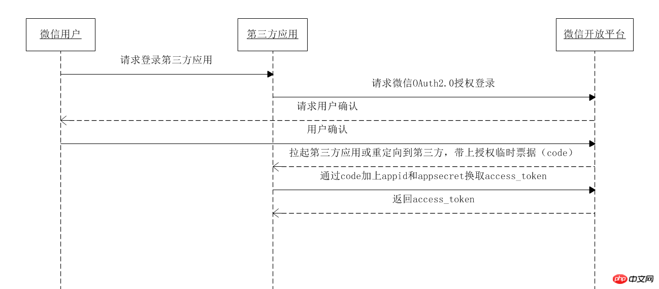 微信OAuth2.0授权登录目前支持authorization_code模式,适用于拥有server端的应用授权。该模式整体流程为: