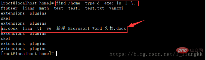 find /home -type d -print -exec ls {} ;登录后复制